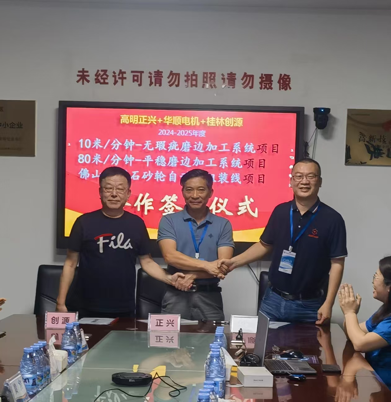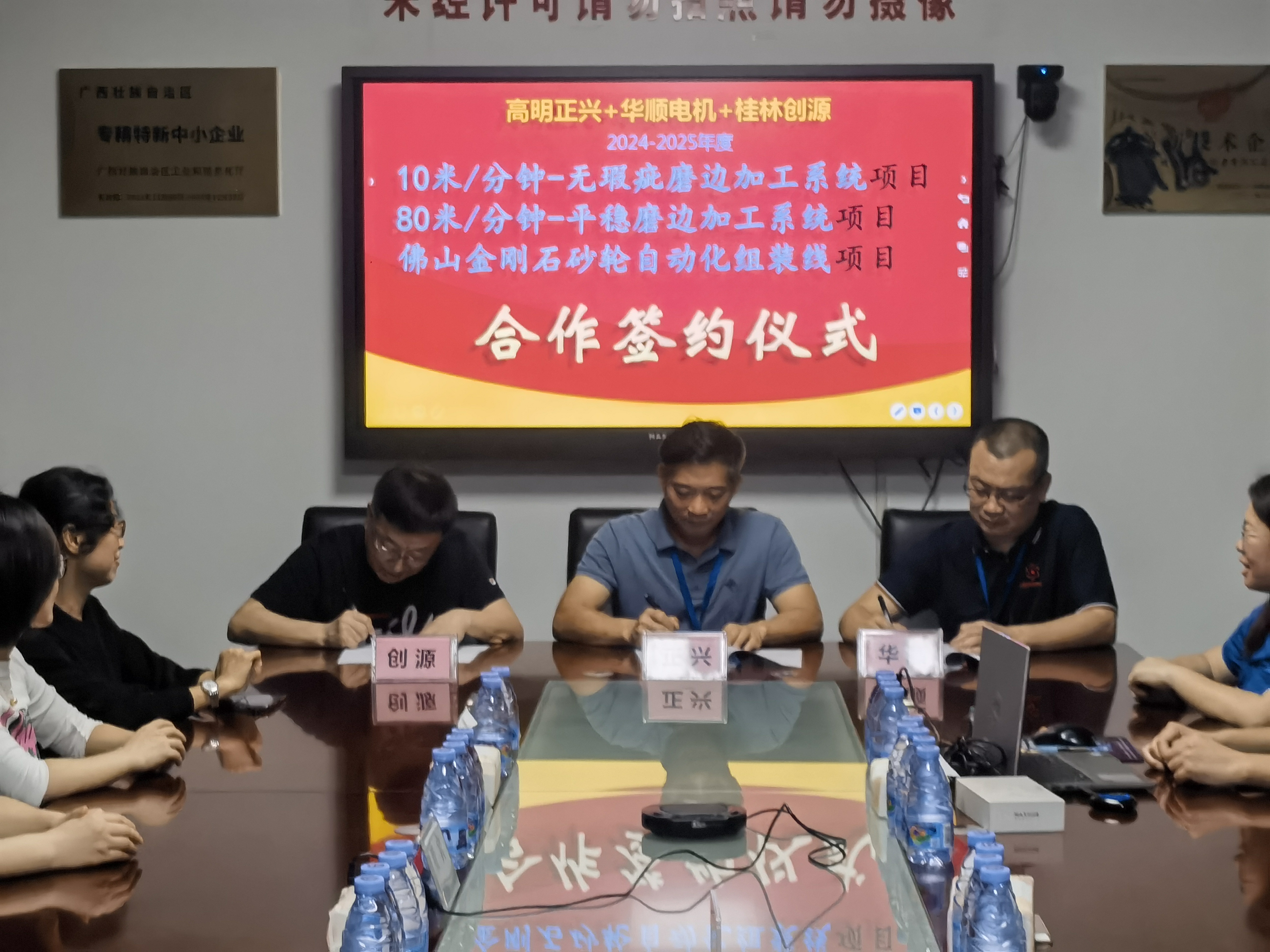 2024年5月,創(chuàng)源公司、正興公司、華順公司三家業(yè)內(nèi)領(lǐng)軍企業(yè)齊聚高明正興公司(5月17日)和桂林創(chuàng)源公司(5月23日),就2024年上海玻璃展會(huì)進(jìn)行了深入分析和總結(jié),并對(duì)行業(yè)未來(lái)走向進(jìn)行了前瞻性的探討。在友好的交流與討論中,三家公司達(dá)成共識(shí),擬定了多項(xiàng)戰(zhàn)略合作計(jì)劃,旨在共同推動(dòng)玻璃加工技術(shù)的創(chuàng)新與發(fā)展。