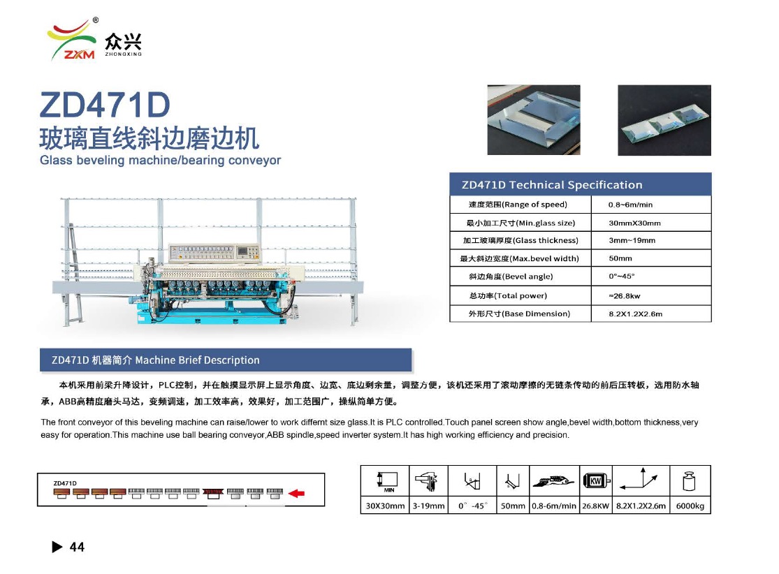 公司目前產(chǎn)品有:雙邊磨、波浪機(jī)、直邊機(jī)、圓邊機(jī)、斜邊機(jī)、多級邊磨邊機(jī)、鉆孔機(jī)和異形機(jī)等多種型號的玻璃深加工設(shè)備。