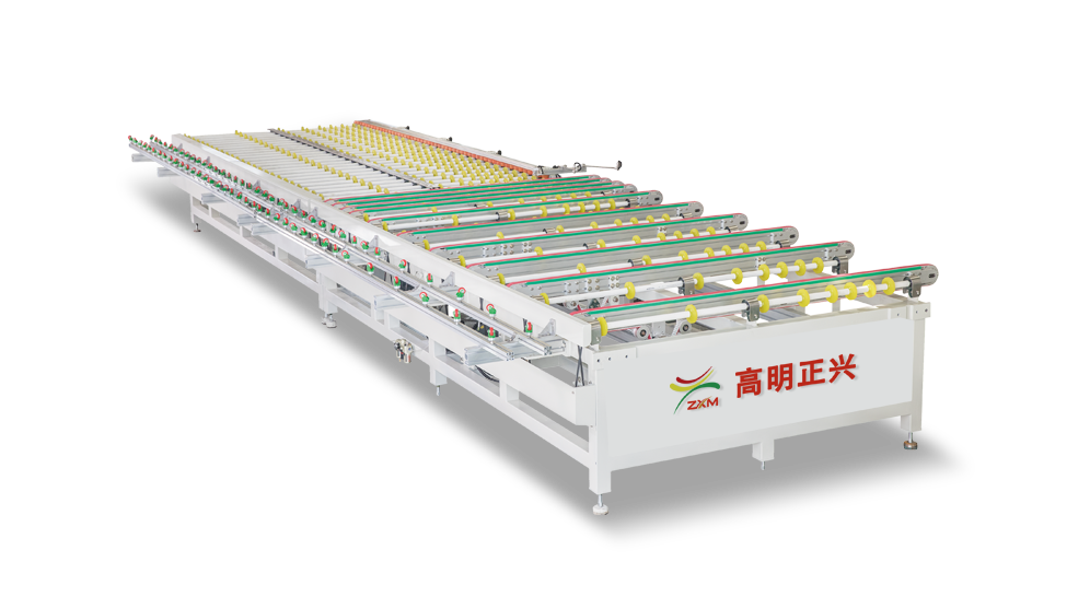 采用2段式結構。前段通過拋物式升降結構,輸送/改變玻璃/巖板運行方向。