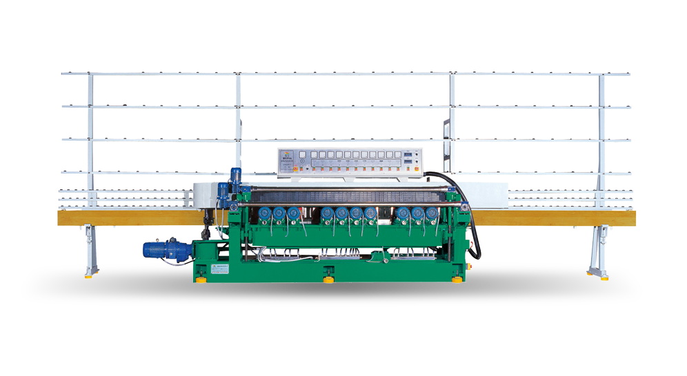 該機(jī)采用短節(jié)巨大滾子鏈條傳動壓板,磨頭采用ABB電機(jī)精度高、能耗低、穩(wěn)定性強(qiáng),主傳動采用無級減速器調(diào)節(jié),同步帶輸送,主要用于磨削玻璃的斜邊,斜邊的多種組合。精磨和拋光以及底邊磨削一次加工完成。具有加工效率高、質(zhì)量好、性能穩(wěn)定、操作簡便及損耗低等特點(diǎn)。